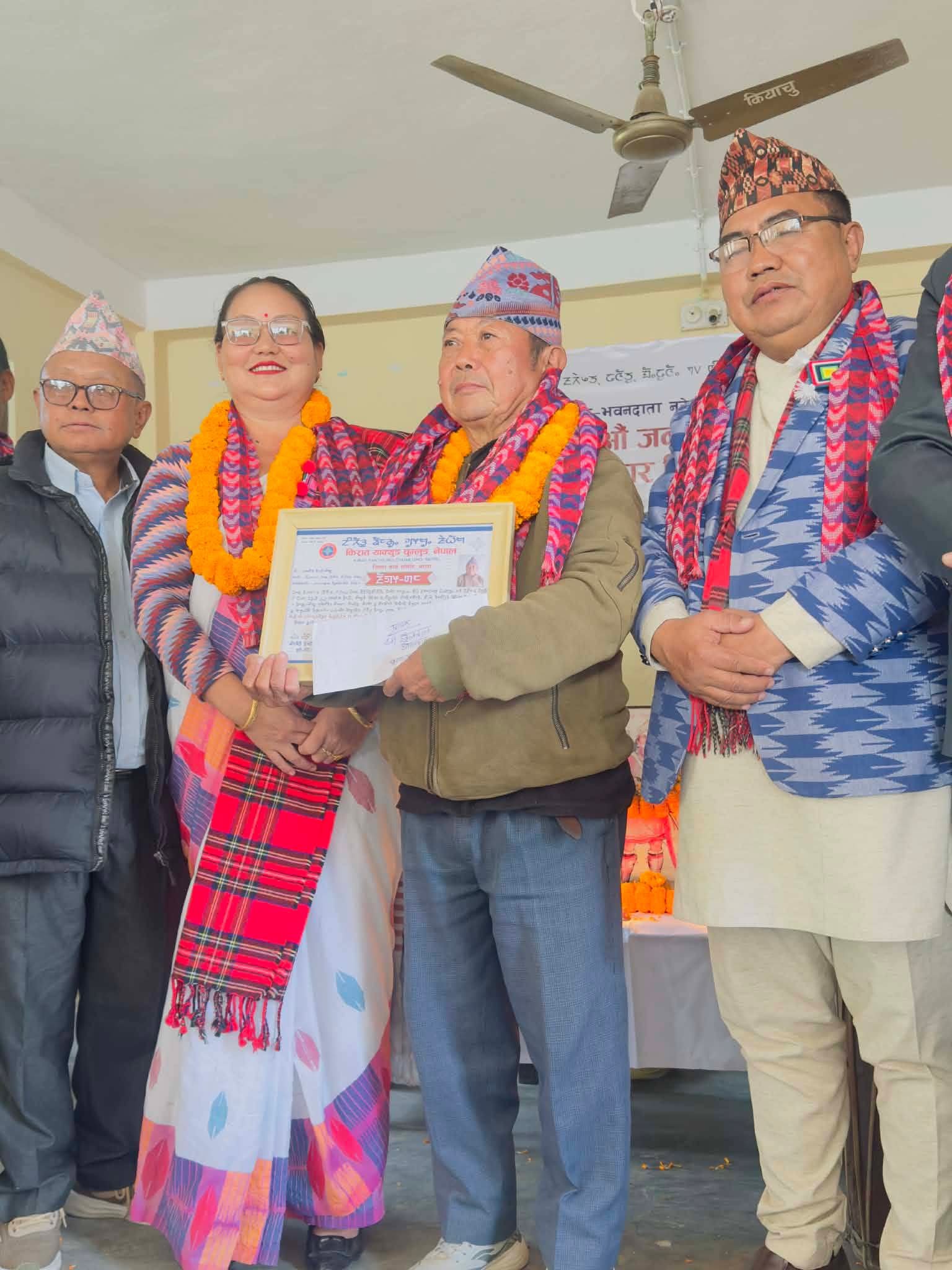 झापा । किरात याक्थुङ् चुम्लुङ् झापा शाखालाई जग्गा र भवन प्रदान गर्नुहुने दाता स्व. नरेन्द्र बहादुर आङ्बुहाङ् र वहाँकी धर्मपत्नी  कमलादेवी आङ्बुहाङको स्मृतिमा स्थापना...